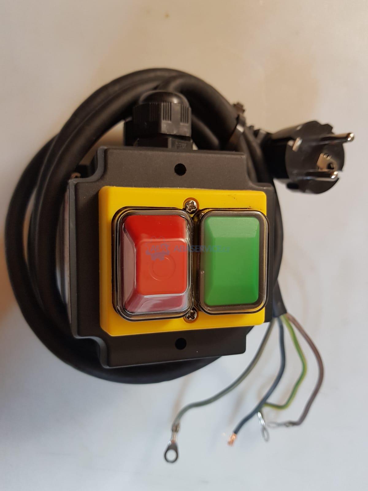 Kompletní vypínač se zásuvkou 230V/16A. Součástí je 3 žílový přívodní kabel k motoru. Na konci jednotlivých žil jsou nalisována kabelová očka pro připojení na svorkovnici motoru.