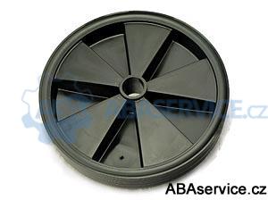 Plastové pojezdové kolo s drážkovým vzorkem usnadňuje manipulaci s míchačkou. Je nasazeno na ose základového rámu. Kolo je zajištěno závlačkou nebo zajišťovací podložkou.