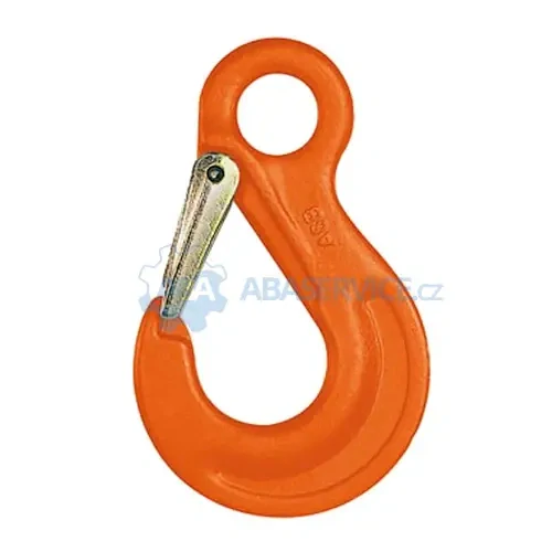 Závěsný hák s pojistkou pro bezpečné upevnění vázacích prostředků.