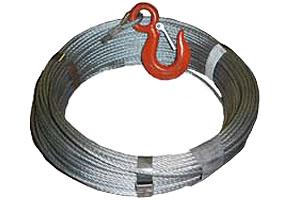 Ocelové lano s hákem. Vhodné pro vrátky a zdvihadla. Průměr lana 4 mm a délka 60 m.