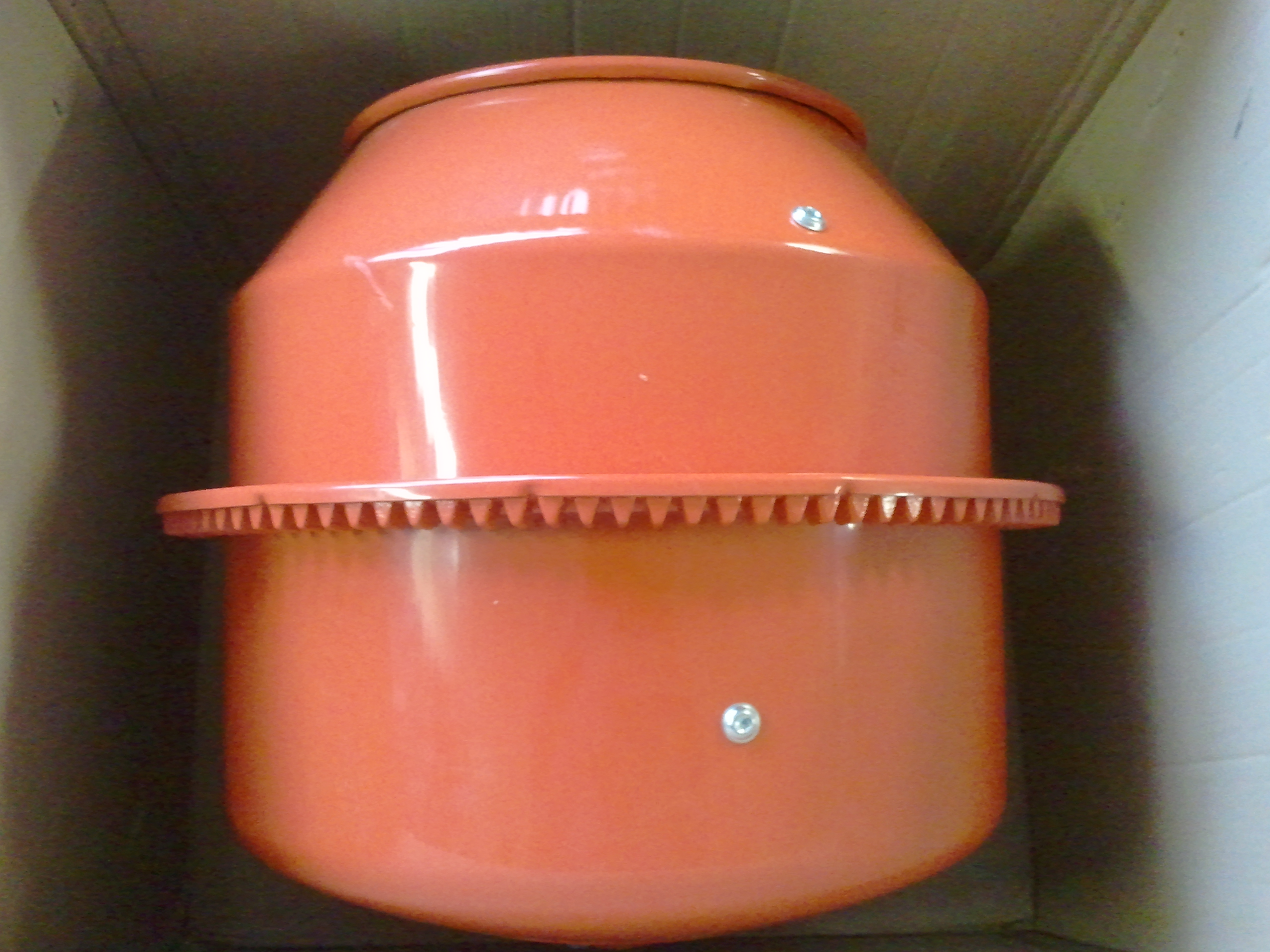 Kompletní buben míchačky. Buben je včetně oranžové barvy a lopatek. Na bubnu je unašeč pro montáž na hřídel výklopného rámu. Součástí bubnu je i ozubený věnec. Buben je dodáván bez výklopného rámu.