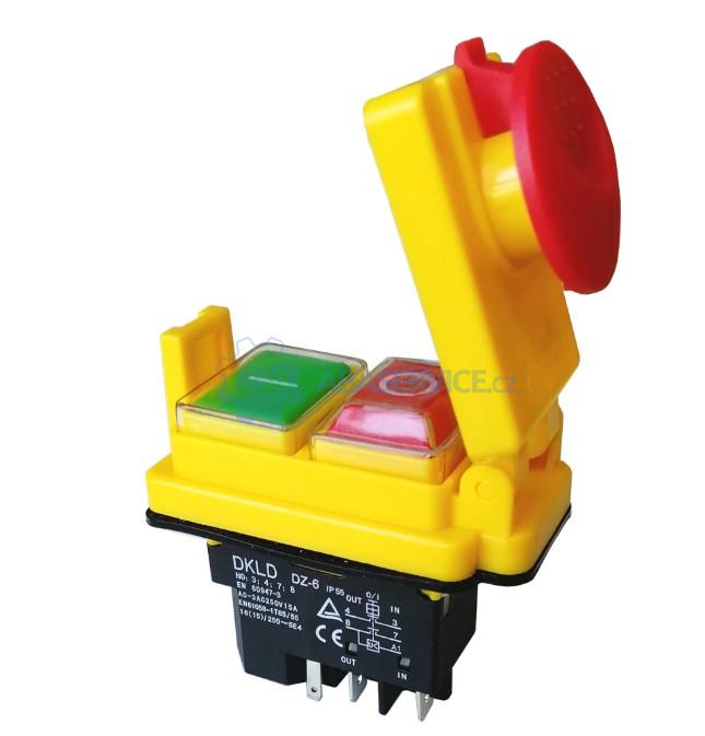 Speciální vypínač pro míchačky Limex 230V/15A se STOP tlačítkem. Vypínač v novém provedení s žlutým bezpečnostním krytem a červeným STOP tlačítkem.